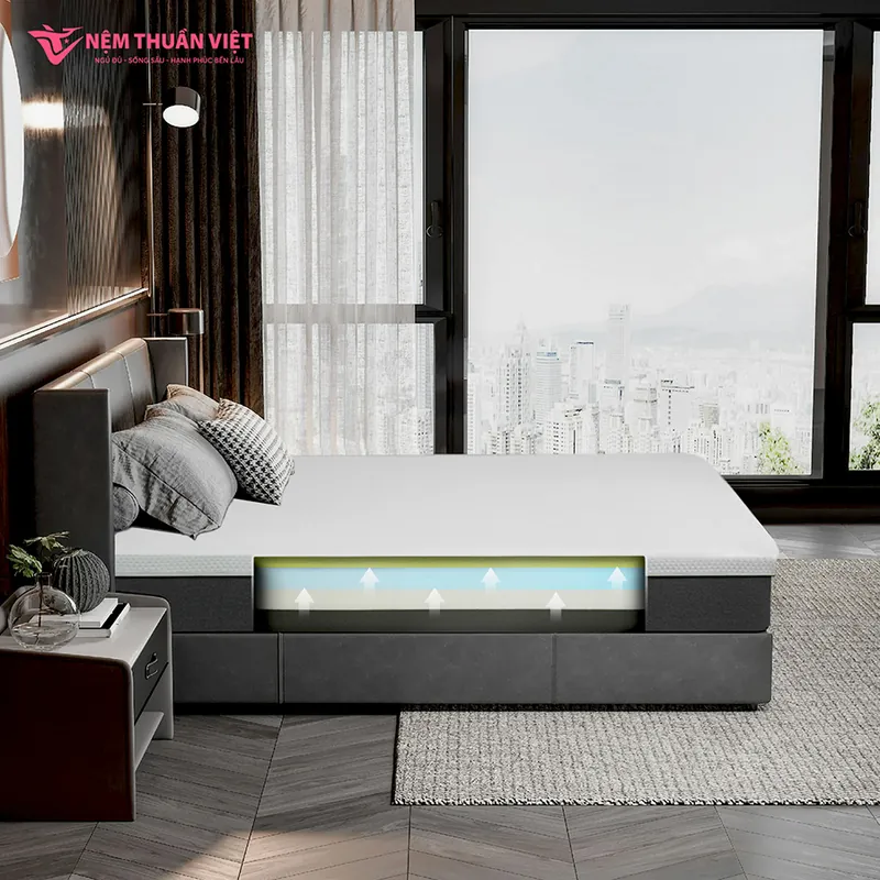 Foam thiên về cảm giác êm và ôm cơ thể. Nếu chọn foam đúng mật độ và thiết kế, bạn sẽ thấy vùng vai/hông “dễ chịu” hơn, nhất là khi ngủ nghiêng. Nhưng foam cũng có rủi ro nếu quá mềm: hông dễ lún sâu, lâu dài có thể không hợp với người cần nâng đỡ rõ. Một điểm nữa là độ thoáng: foam thiết kế tốt sẽ dễ chịu hơn nhiều so với foam kín.