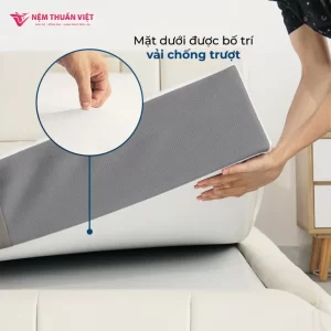Mặt dưới áo nệm được bố trí lớp chống trượt giúp nệm không bị xê dịch khi sử dụng, cố định nệm, giúp bảo vệ và tăng tuổi thọ của nệm.